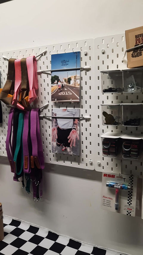 Our showroom is found on the first floor of JB Customs, a workshop for motorcycles, metalwork and prototyping. You can find both Space Skates items and JB Customs items in our showroom.